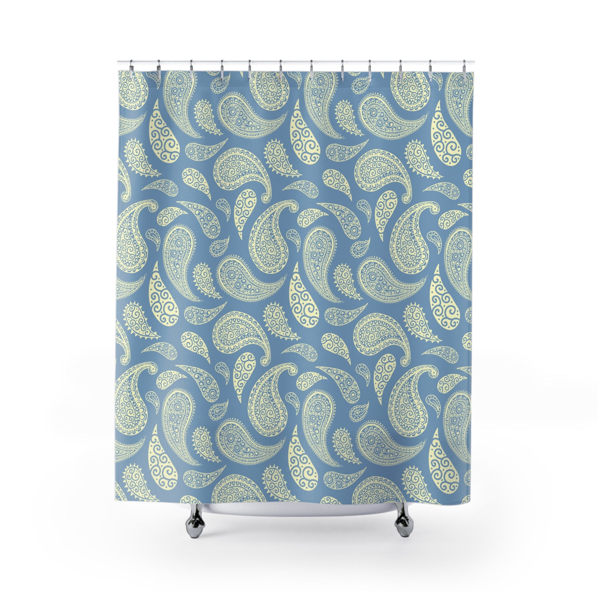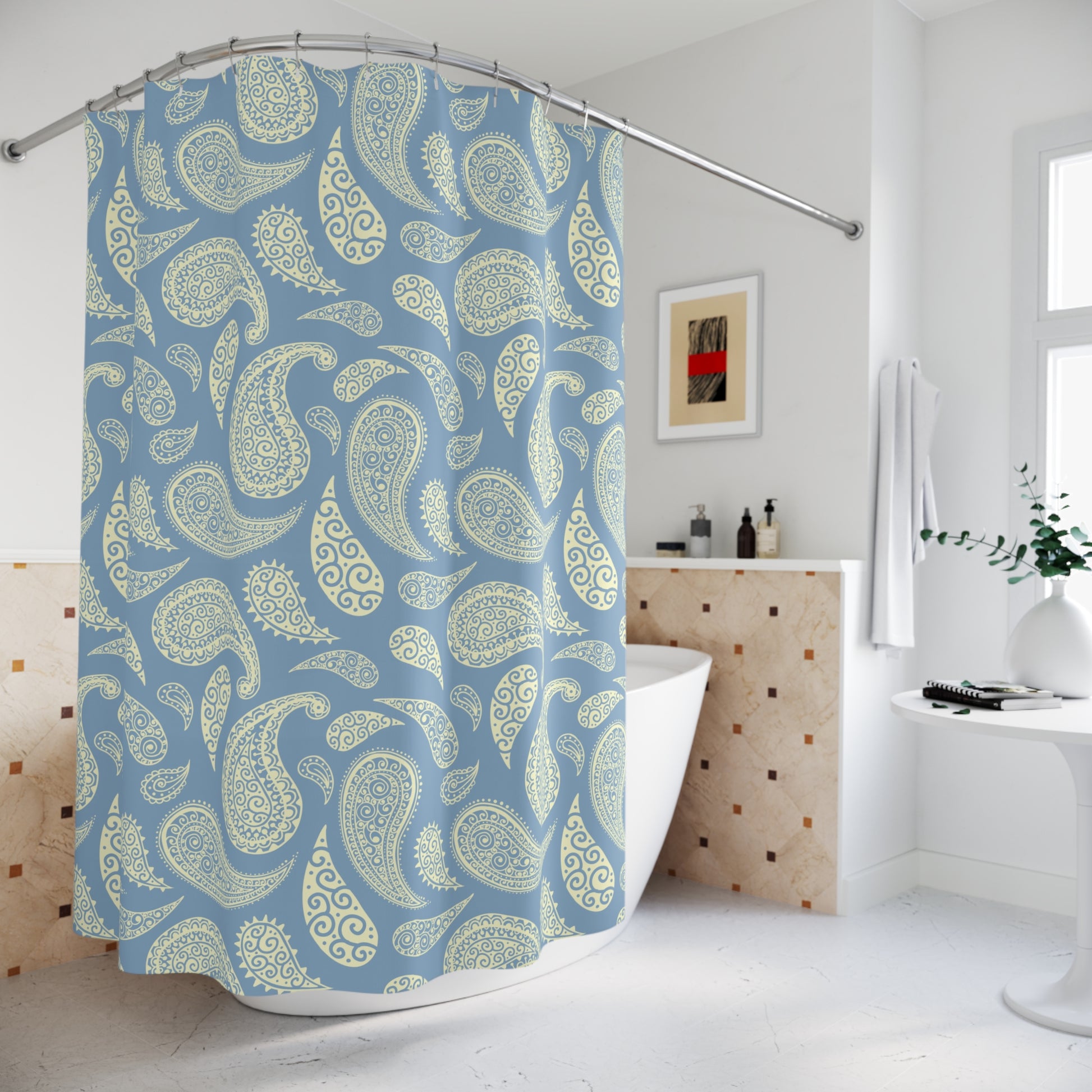 Blue White Paisley Shower Curtain — Elegant Boho Bathroom Decor