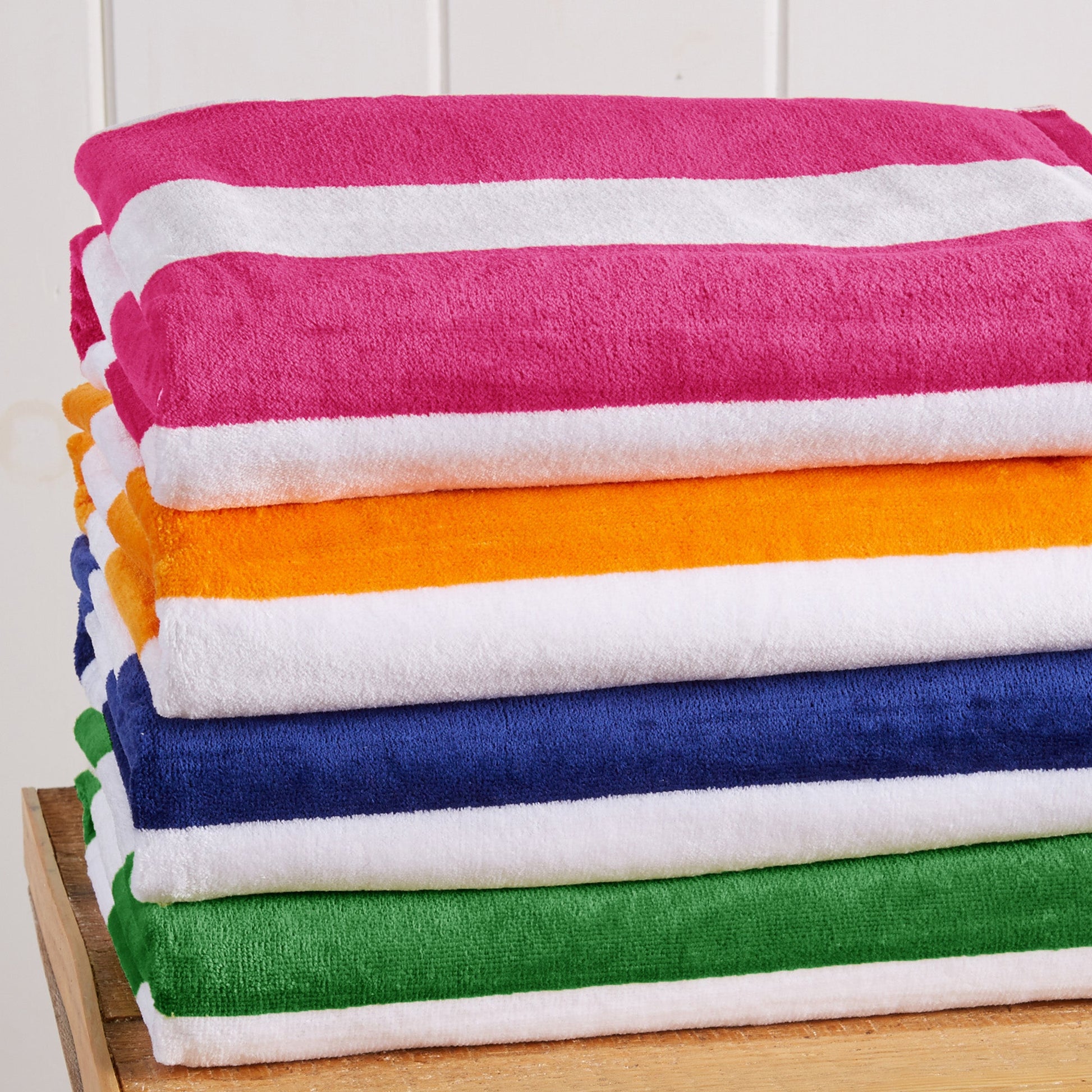 Enjoy an oversized ultra-soft cotton cabana towel! This 100% cotton velour beach towel features the classic cabana style with bright colors for everyone's style. These towels are perfect for a family vacation, camping adventure, or wherever this summer takes you. These cabana towels are timeless and crafted with durable cotton, so they'll last you many summers without losing style or comfort. These soft towels are easily machine washable with like colors, just tumble dry on low and you'll have softer towels each time.