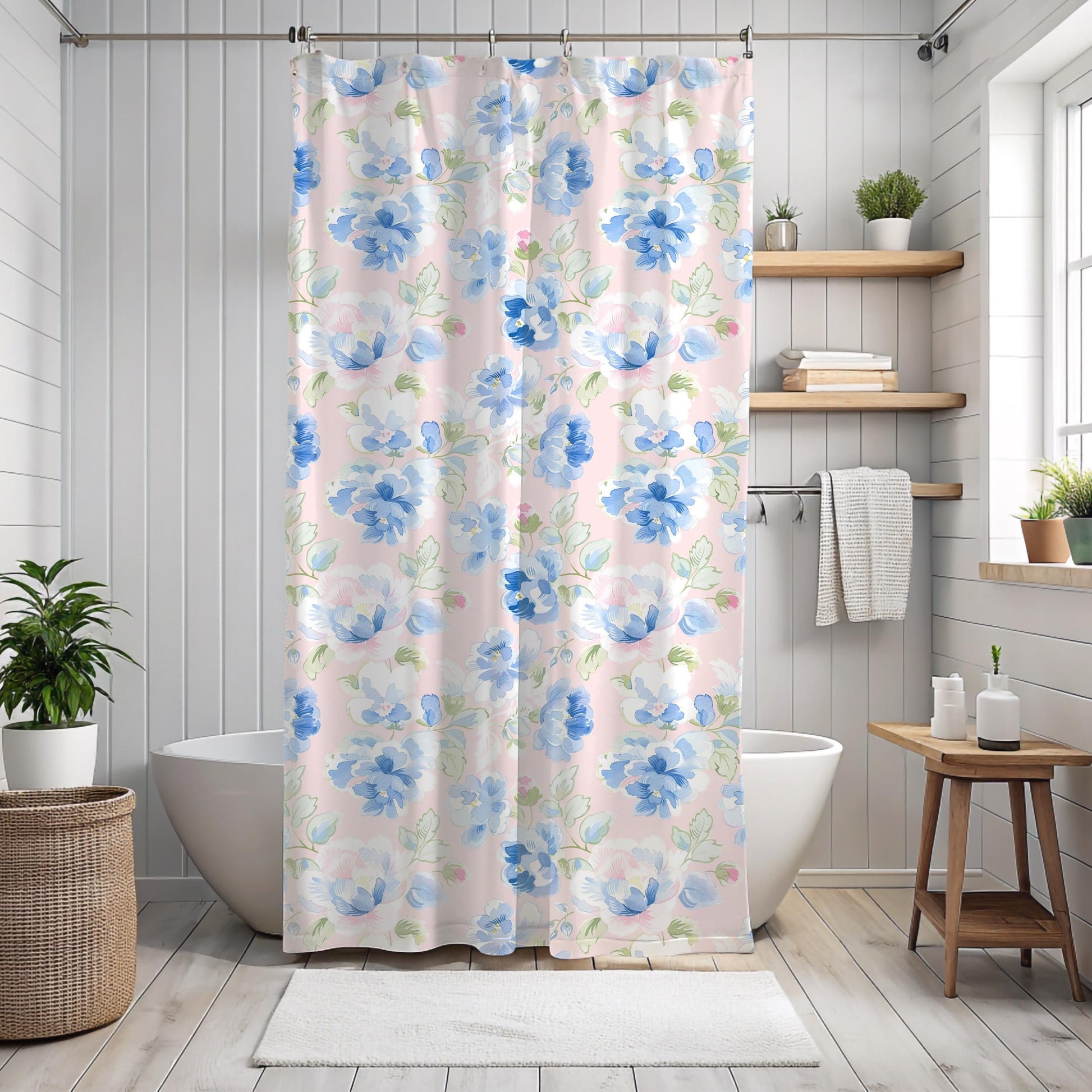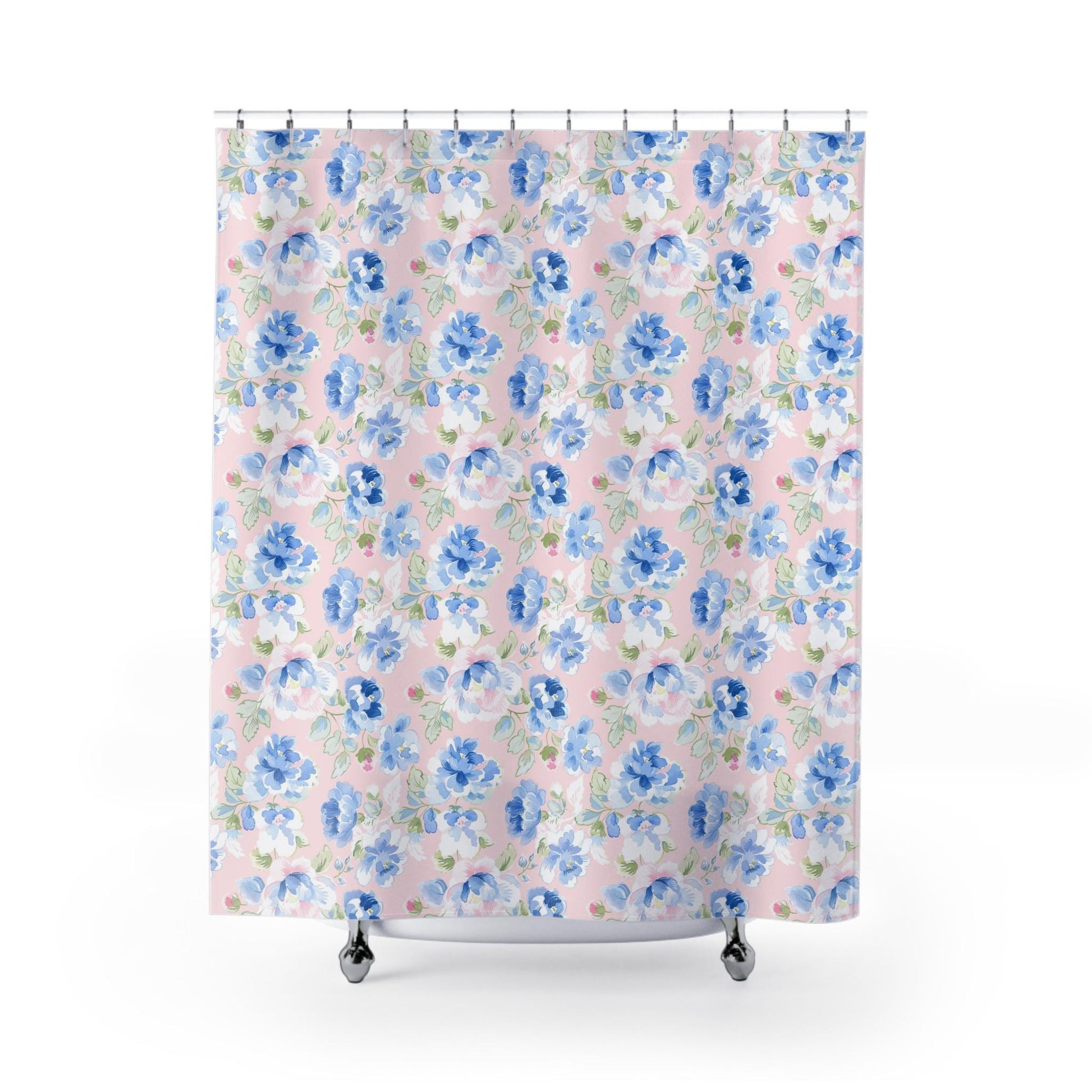 Custom Shower Curtain, Floral Pink and Blue